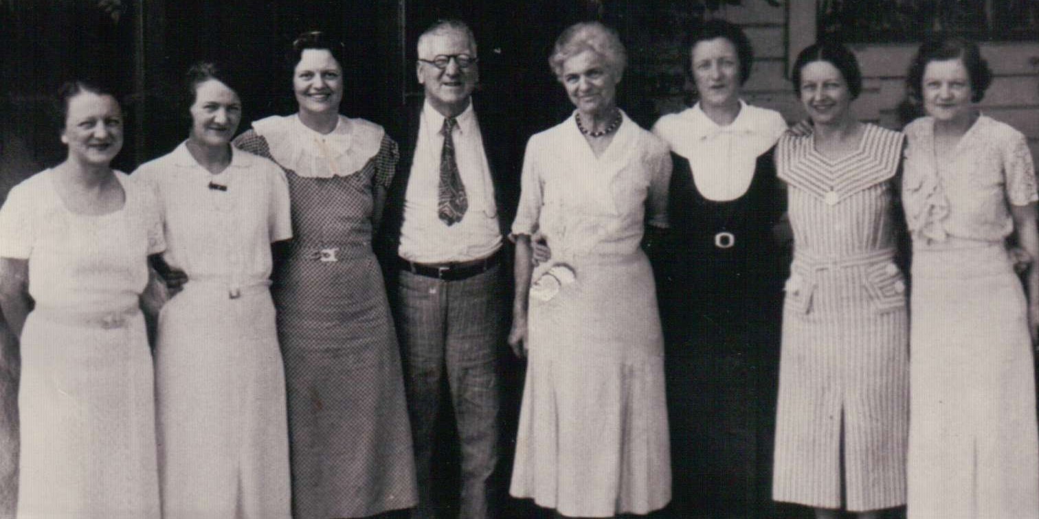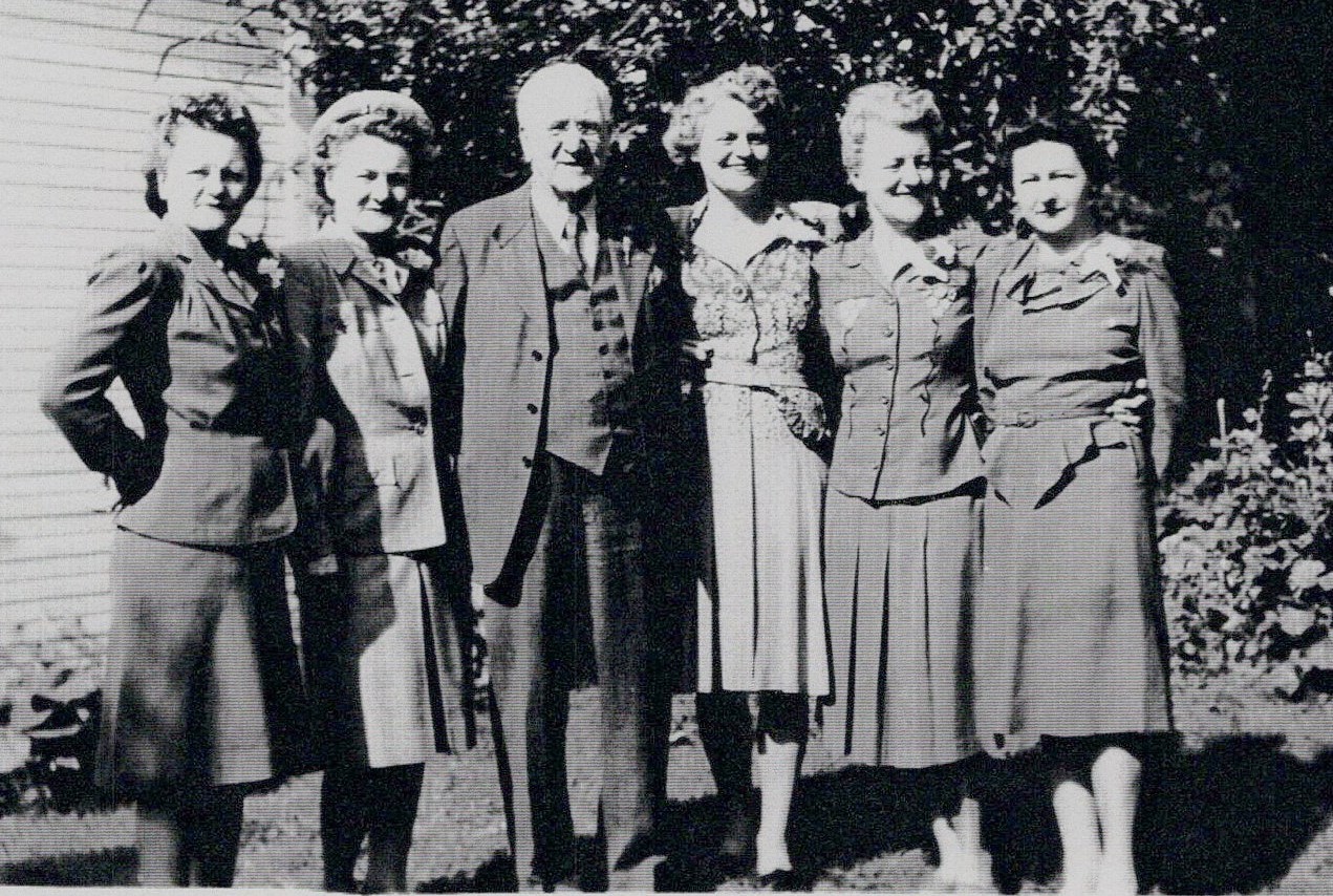 Legend has it the Tate Family Picnic started in the 1930s. One of the earliest photos from a picnic is the 1952 picnic that took place at the home of Vic & Helen Murdock on Glen Creek Rd, West Salem, Oregon. Participants included William E. Tate (in the center with the fedora), father of the six Tate sisters.